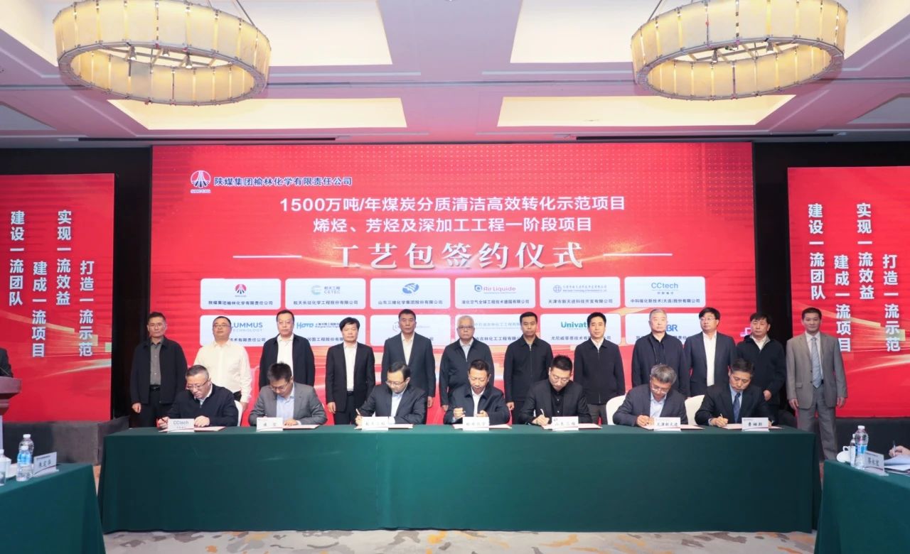 陕煤集团榆林化学有限责任公司1500万吨/年煤炭分质清洁高效转化示范项目烯烃、芳烃及深加工工程分为二期一阶段100万吨甲醇精馏装置采用天津市新天进科技开发有限公司自主知识产权工艺技术——五塔双三效甲醇精馏工艺方法。