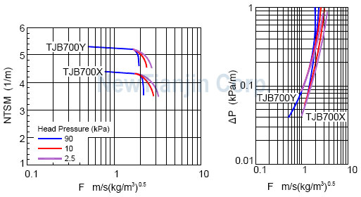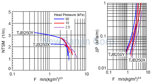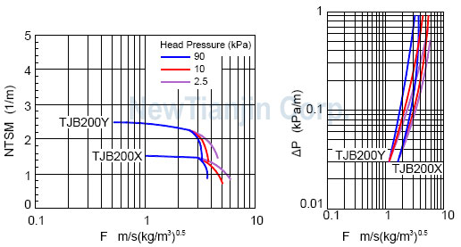 以下提供了部分金属板波纹填料的性能曲线。